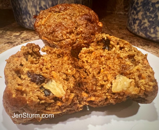 Preheat oven to 350 F. Mix the dry ingredients & spices together in a large bowl, mix in the eggs, then add the remaining ingredients. Mix well with a spoon. Place cupcake liners in 19 muffin tin spots & fill each to the top. Bake approx 20-24 minutes. Ovens vary! Don’t overbake. Remove from oven and let them cool on a wire rack. They are best eaten after they’ve cooled down. Can store at room temperature for 2 days or in the refrigerator for a week. Can’t eat them all in a week? Freeze them, but of course!